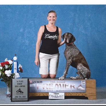 Champ was our first GSP. We adopted him at 18 months of age and we are so thankful we did! He excelled into being our Top Canine athlete for several years and is the reason we love the breed. He had a wonderful temperament and a personality like no other.
