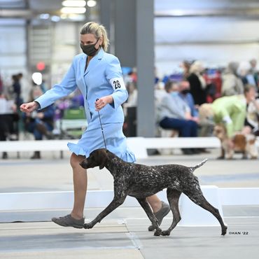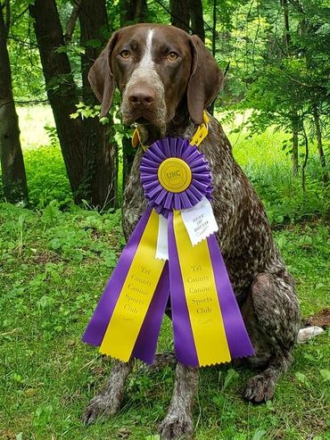 Jane joined our family from Lucy and Levi's second litter in August, 2020. This true Abbe Lane line breeding is carrying on our foundation dog Riot and Jane reminds me of him every day. She has a ton natural ability and desire to please along with a wonderful temperament and has maturing into a beautiful girl. We are having fun on our journey and she is one to keep an eye on in the future!