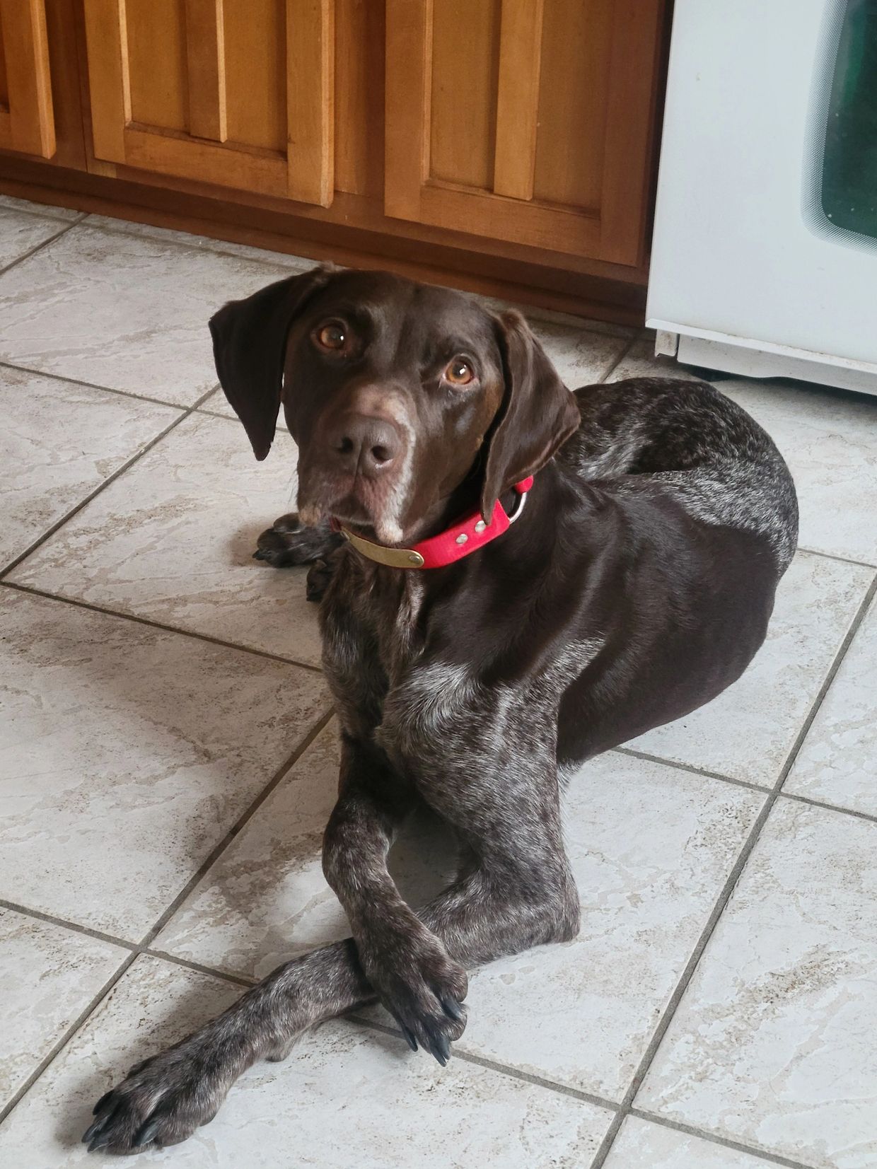 Jager is from our Piper x Levi litter which brought our lines together to create great temperament, biddableness, and awesome bird drive. Jager is 4 years old and is looking for his new forever home, due to no fault of his own. Jager is a house dog that enjoys being spoiled. He is great with kids and other dogs. He has had professional hunt training and is steady to the flush and has been force fetched, he is crate trained and collar conditioned.